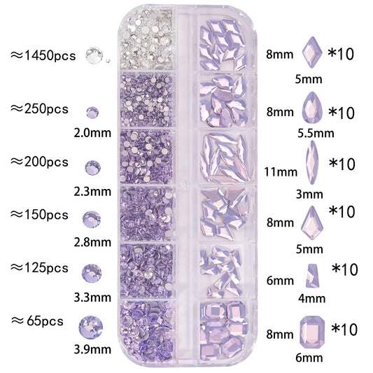 ネイルアートラインストーン,チャーム,クリスタル,パープル,フラットバック,ミックスサイズ,DIY,5セットネイルデコレーション用