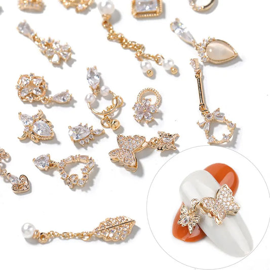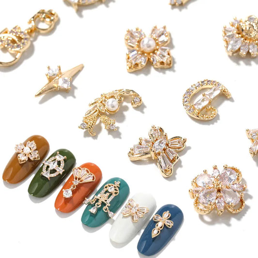 金属とダイヤモンドのペンダント,3D,高品質の装飾,マニキュアチャーム,30セット