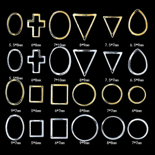 3Dネイルステッカー,中空リベット,幾何学的な金属ボーダー,ゴールドの丸い四角いデザイン,マニキュアアクセサリー,100個セット