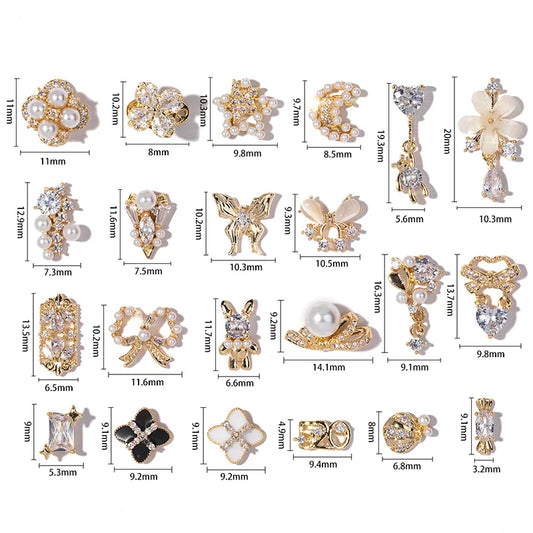 高級ジルコン真珠の弓クマラインストーン合金ネイルアートの装飾のためのファッションチェーンの房ジュエリー44個セット