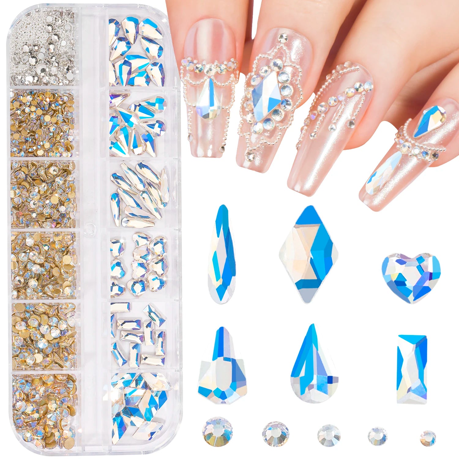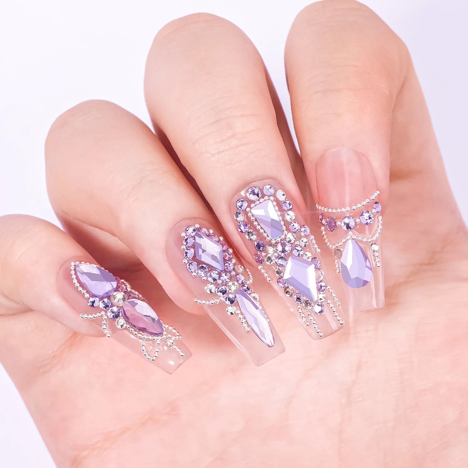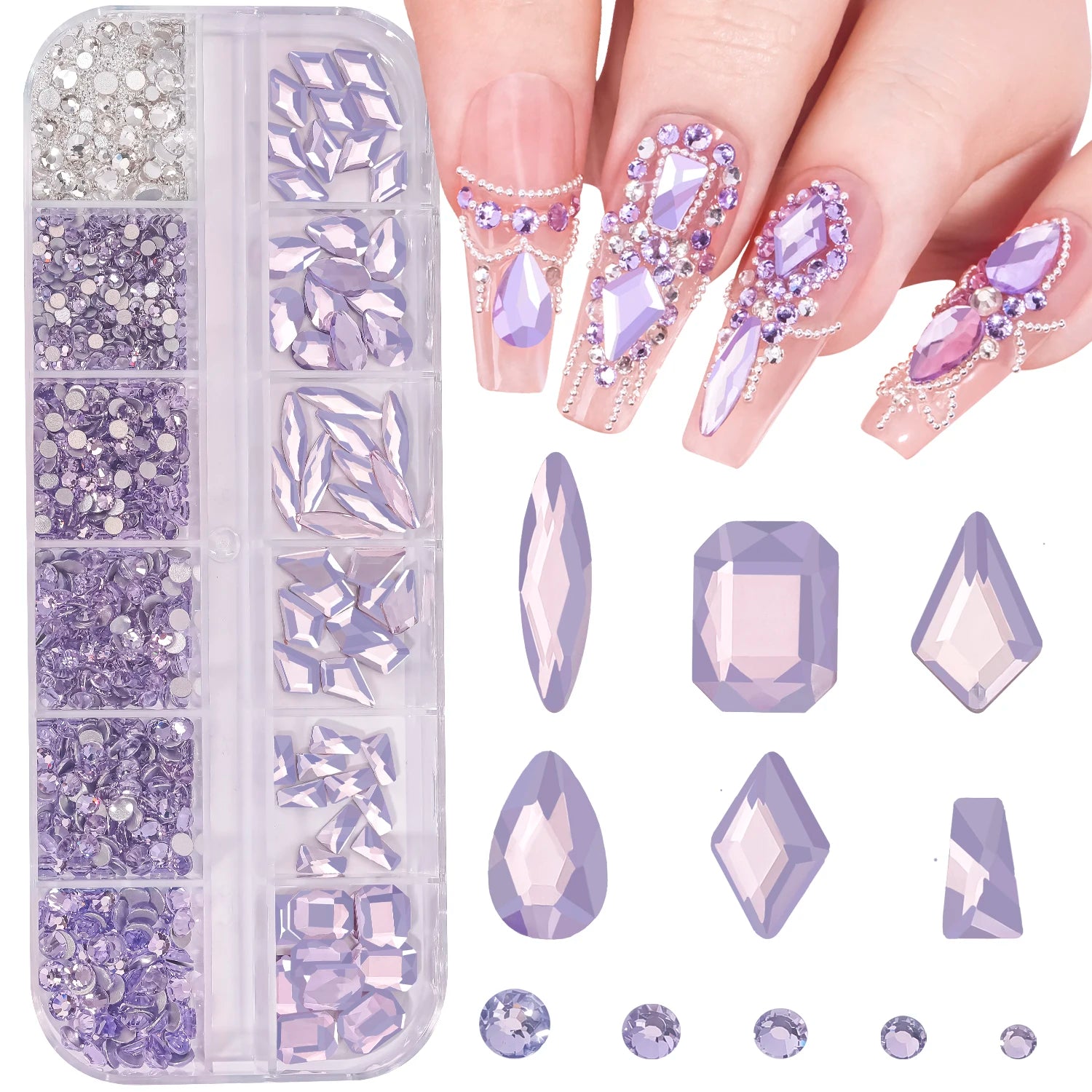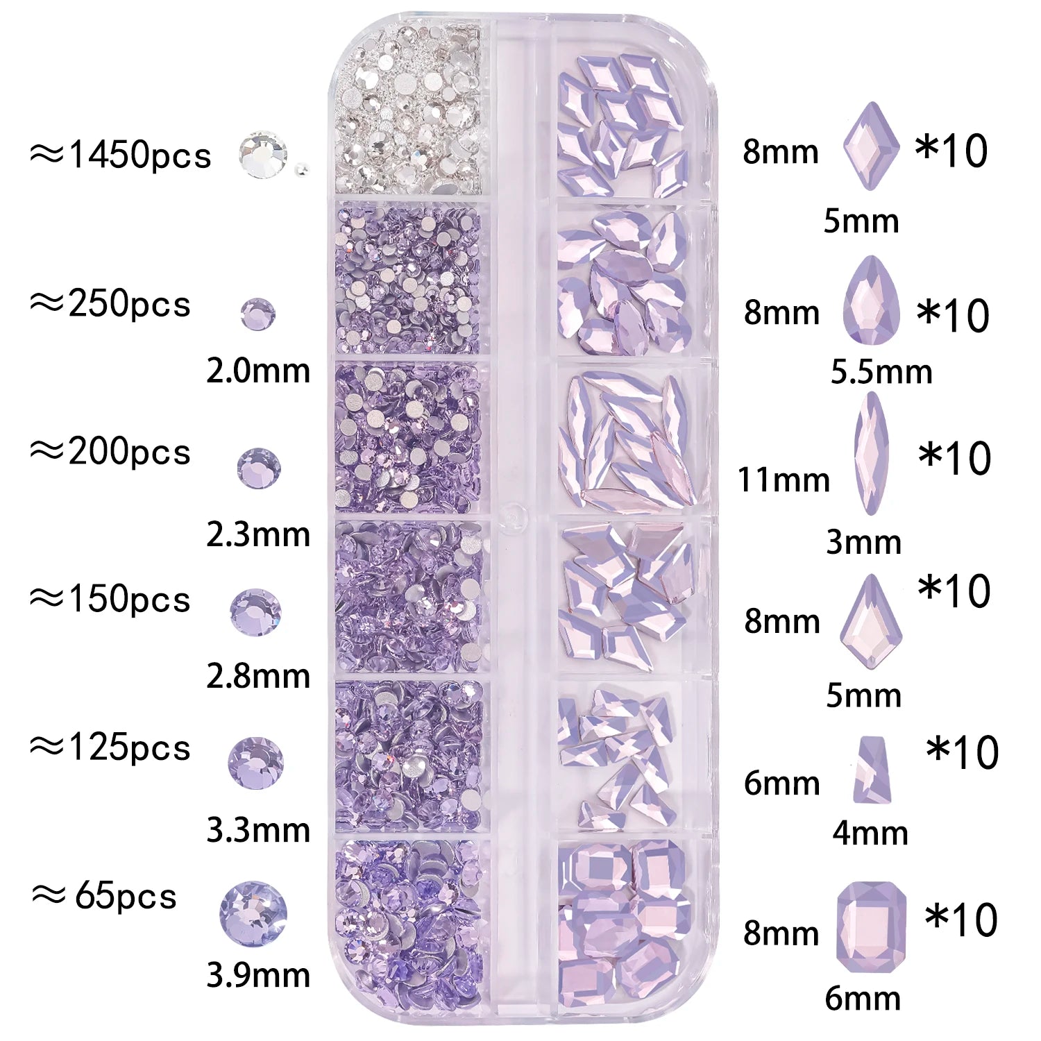 ネイルアートラインストーン,チャーム,クリスタル,パープル,フラットバック,ミックスサイズ,DIY,5セットネイルデコレーション用