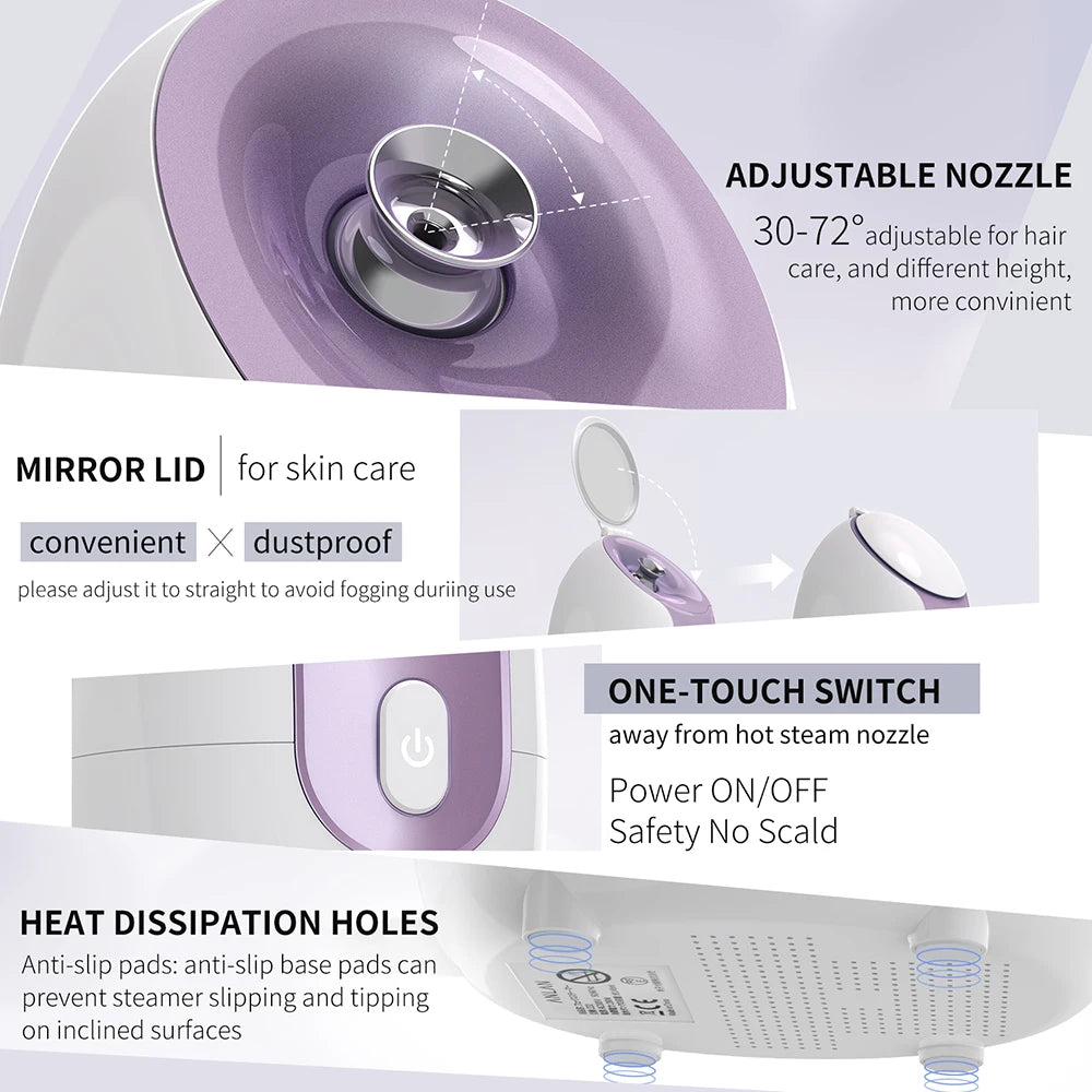 ホットナノフェイススプレー、ミラー付きフェイシャルスチーマー、ホットフォグ、ポアクリーナー、スキンケア保湿、加湿器、スパマシン